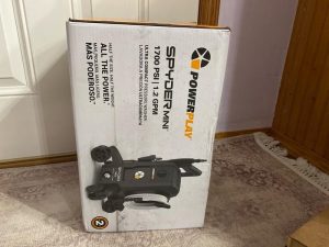 This Pressure washer packs a good amount of punch for it’s size. It is appropriately named Spyder because while it only has 4 wheels it still looks like a spider as it rolls around behind you as you pull on the hose. It has a lot of well thought out features and is a pleasure to use. It doesn’t have as much powers as my large gas powered washer but for quick cleaning of porch furniture or even the car it is convenient to use and does a good job. I did have trouble getting the wand holder to slide into position during assembly. When it wouldn’t go in I gave it a rap with my hand and broke the plastic top holder ring. I had even tried spraying it with Pam prior to that to try and get it in.