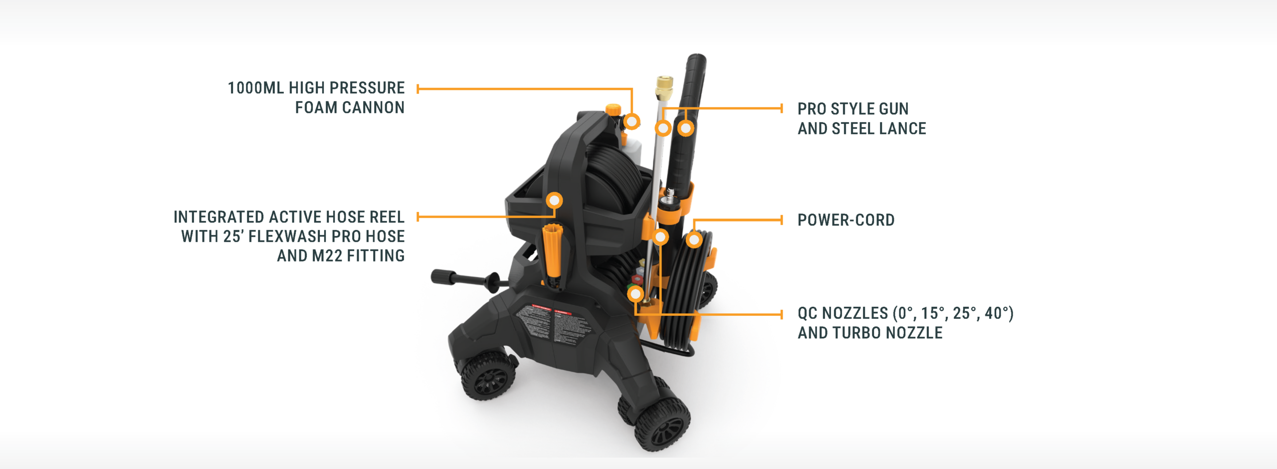 A hose reel on a machine this small has made using my pressure washer AND putting it away so easy!